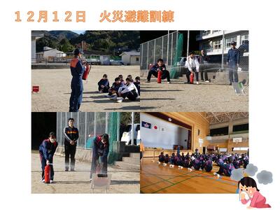 12月12日に火災避難訓練を実施しました。休み時間を想定したため校内放送を聞き、生徒が自ら判断して避難をしました。また、消火器の訓練や応急処置について、ご指導いただきました。松島分署の皆様、大変お世話になりました。