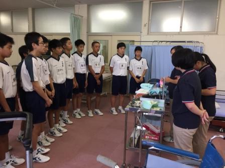 8月30日(木)に、3年生が城北高校福祉講座に参加しました。福祉体験学習に向けて、福祉に対しての心構えや必要な知識等を高校生に教えてもらいました。教えていただいた先輩方に感謝し、福祉体験学習に生かしましょう。講座をしていただいた城北高校様ありがとうございました。