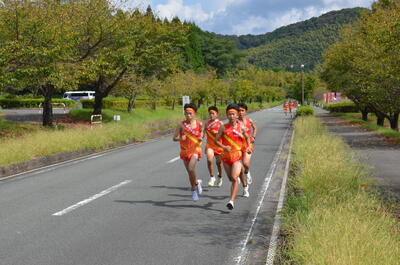 9月16日 中体連駅伝競走大会に向けての練習を山鹿市スポーツカルチャーセンターで行い、それぞれのコースを子供たちが試走しました。