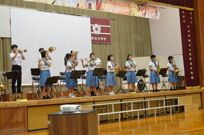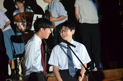 プログラムは、生徒会執行部のオープニング企画、音楽部の吹奏楽演奏と合唱から始まり、合唱コンクール、学年の創作劇発表と続きました。