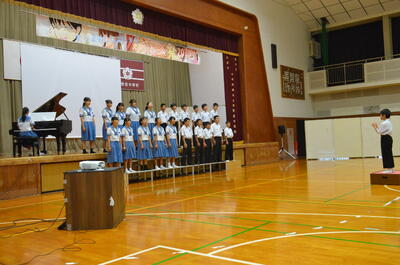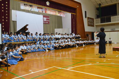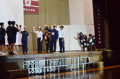 また、合唱コンクールでは、菊池市立菊池南中学校青木敦子先生に審査と講評をいただき、貴重なご示唆を得ることができました。創作劇では、転回社の皆様の的確なご指導のお陰で、子供たちに潜在している表現者としての力を引き出していただきました。