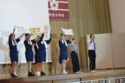 10月4日 米野中祭を行いました。生徒会が、今年度の米野中祭テーマを「~笑う米野には克ち来る 笑顔満祭 2025~」としましたので、オープニングから笑いあり、感動ありのとっても素敵な学習発表会になりました。