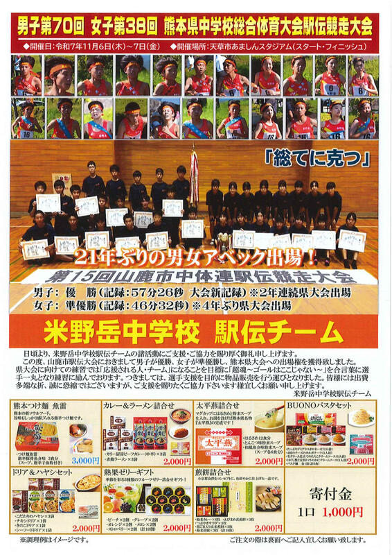 21年ぶりに男女で県大会に出場するにあたり、保護者の皆様、地域の皆様にはたくさんのご芳心をいただきました。皆様のご厚情は選手をはじめ監督、スタッフにとってかけがえのない貴重なもので、一同心から感謝しています。
