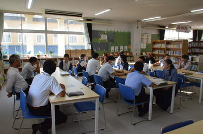 10月15日、3年生が近隣の高等学校や陸上自衛隊少年工科学校の先生方や生徒から、学校の特色や学校生活について話しを聴きました。