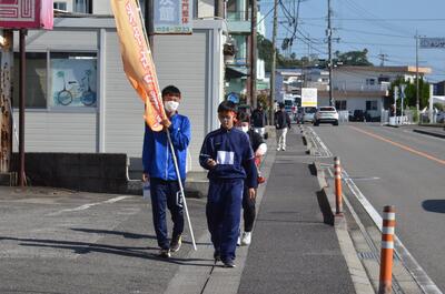 11月7日 天草市本渡町で熊本県中体連駅伝競走競技大会が開催されました。11月とは思えないほどの陽気でしたが、選手たちは天草の潮風に押されて一人一人が懸命に走り、襷をつなぎました。