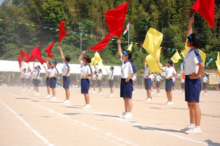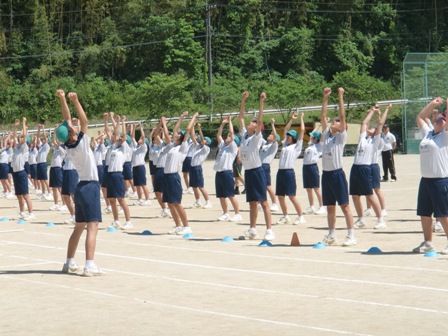 今日から体育大会の全体練習が始まりました。日差しの強い日でしたが、子ども達は元気に練習していました。まだまだやり直しをする場面も見られましたが、これから体育大会に向けて練習を重ね、上達していく事でしょう。