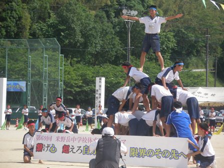 5月22日(日)、晴天の中で第69回米野岳中学校体育大会を無事に開催することが出来ました。多くの来賓、保護者、地域の方々にご来場いただき、笑顔あふれる体育大会となりました。生徒たちも、今までの練習の成果を存分に発揮し、いきいきとした笑顔で楽しんでいました。