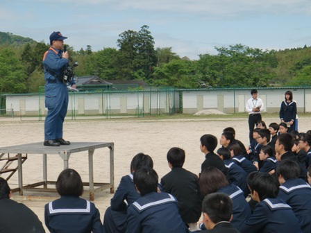 今日は2時間目に避難訓練を実施しました。地震が起きて調理室から火が出たという想定で行いました。熊本地震があり、今も余震が続いている状況のためか、生徒達も真剣さが感じられました。素早く避難を終え、来て下さった消防署の方にも早かったとお褒めの言葉を頂きました。