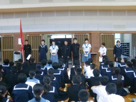 最後に校歌を歌って閉会しました。生徒達は大きな声で爽やかに歌っていました。今月の体育大会ではもっと大きな声で歌ってくれることでしょう。