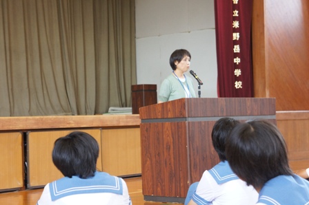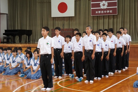 校長先生のお話では、中体連大会の行進で、米野岳中の行進はとても良く、大会が引き締まったと褒めていただきました。また、これから3年生は引退ですが次の目標に向かって、メリハリのある生活を送って欲しいとのことでした。