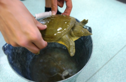 今日、学校のプールですっぽんが捕獲されました。生きのいいすっぽんで、写真の先生の手に噛みつこうとしました(噛まれませんでした)。今後は川に返すことなどを検討しています。すっぽんくん(仮)、元気で!