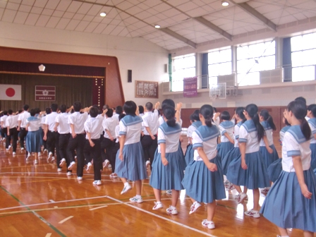 本日昼休みに、中体連に出場する生徒の、開会式行進練習が行われました。全員しっかり行進することが出来ていました。本番でも大きな声で立派な行進を見せてくれる事を期待しています。