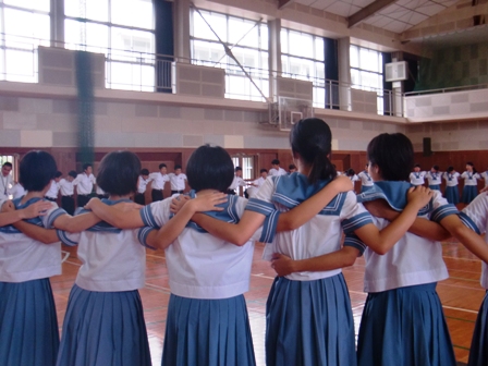 最後に全員で円陣を組み、校歌を歌いました。全員気合いが入った表情で、明後日から始まる中体連に向けて気持ちは十分のようです。