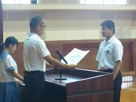 全校集会(中体連表彰)