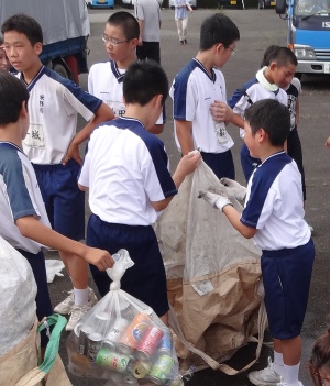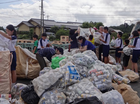 7月3日(日)に千田小学校の資源回収がありました。千田小出身の本校生徒がボランティアで資源回収に参加しました。地域の方々のご協力もあって沢山の廃品を集めることが出来ました。生徒達はペットボトルと空き缶を分別したり、積み荷を下ろしたりと一生懸命働いていました。
