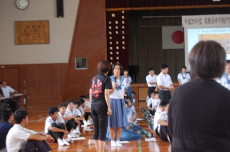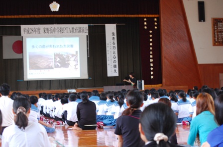 本日は授業参観後、教育講演会がありました。講師は東日本大震災を経験され、「歌うママ防災士」として講演活動等でご活躍されている柳原様です。先日起こった熊本地震を受けて、さらに生徒達や住民の方々の防災への意識も高まっていることと思います。その中行なわれたこの講演会で、防災について考え直すきっかけになったのではないでしょうか。柳原様の講演は実体験を基にお話しをされていたので実用的で、今日からでも始められる防災が満載でした。この機会に家族で防災について話し合いましょう。柳原様、本日は大変ありがとうございました。
