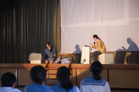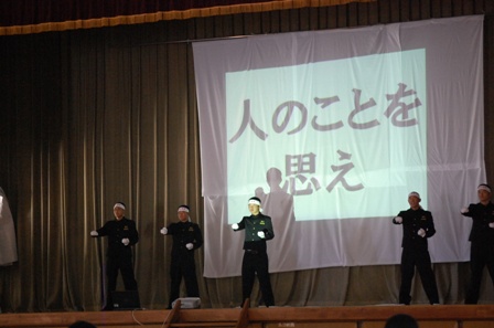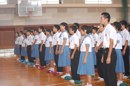 7月14日(木)に、城北高校から総勢70名の高校生と先生方にお越し頂き、講演をして頂きました。本校の吹奏楽部と城北高校吹奏楽部のコラボ演奏に始まり、ダンス部による灯籠踊り、がむしゃら応援団による発表、演劇部による寸劇など盛りだくさんの内容でした。本校生徒達も、高校生のレベルの高さに楽しそうに見入っていました。高校生はとても礼儀正しく、準備の時も素早く動いていました。3年生は来年から高校生です。今回来て下さった高校生の姿から何か感じてくれればと思います。