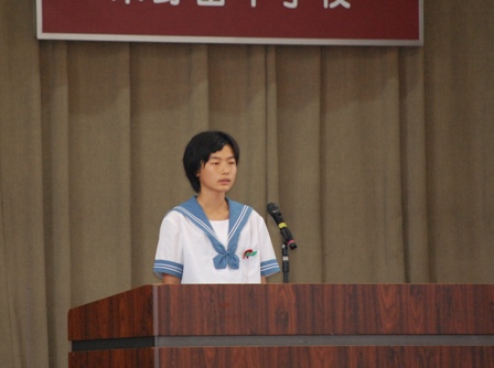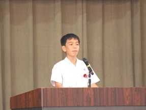 7月20日(水)、1学期の終業式を行いました。式では、各学年の代表者と生徒会の代表者計4名が1学期の反省を発表しました。1学期は体育大会や中体連大会など、たくさんの行事があり、生徒達にとってたくさんの学びがあったことと思います。その後の校長先生のお話しでは、とても落ち着いた生活が出来ていると褒められ、夏休みの過ごし方についても話されました。2学期も生徒達の元気な姿に会えることを祈っています。