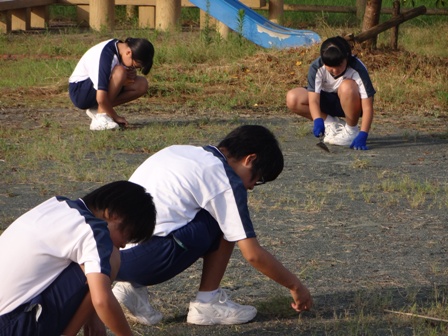 本日早朝6時30分より、小中合同ボランティアを行いました。朝早くからのボランティアにも関わらず、小中学生共に清掃活動に一生懸命取り組んでいました。自分達の住む地域がきれいになると気持ちがいいですね!