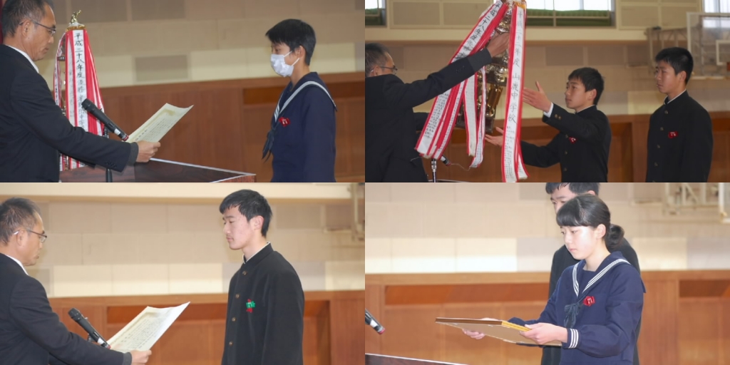 本日、平成29年最初の全校集会を行いました。集会では、昨年活躍したバスケットボール部やサッカー部の表彰に加え、人権作文の表彰も行いました。