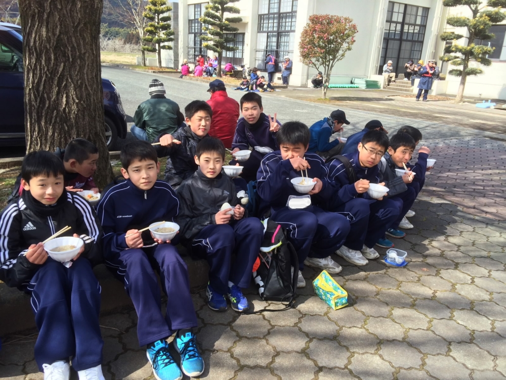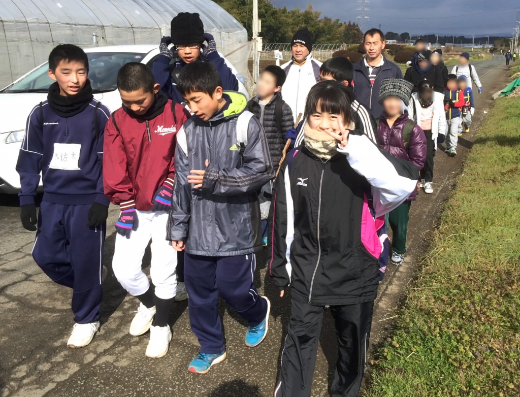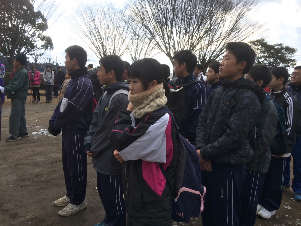 2月11日(土)に、鹿央公民館・市民センター主催の第46回歩け!あるけ!大会が開催され、本校からも数名が参加しました。冷たい風がふく中、日差しが差し込む天候でしたが、鹿央市民センターを出発し、宮・八島を通り、鹿央市民センターに戻る約8kmの距離を歩きました。生徒たちも地域の方々と一緒に楽しく歩いていました。市民センターではおいしい豚汁をいただきました。