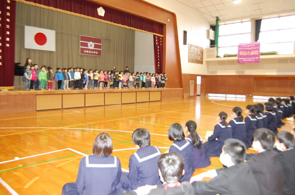 2月23日(木)朝より、新生徒会による初めての生徒集会を行いました。まず、継続した取り組みとなっている手話の練習を全校生徒で行いました。また、各委員会の新委員長からは新しい取り組みも発表されました。新年度に向けて着々と進んでいる米野岳中学校生徒会の意気込みを感じました。