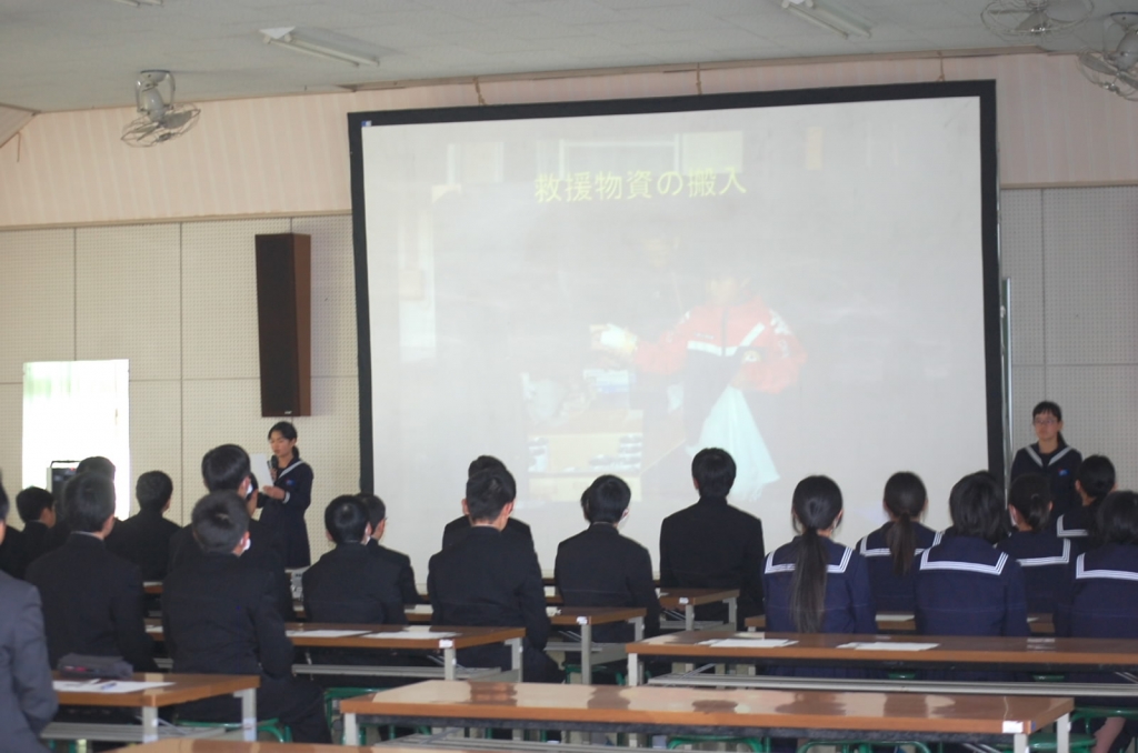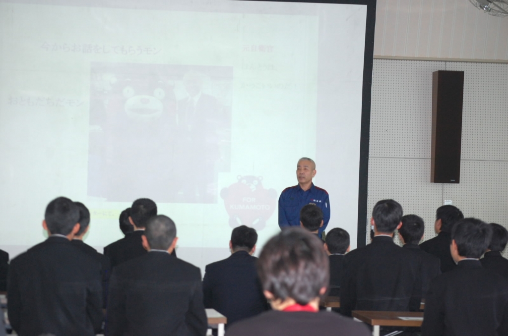 本日6時間目に、防災フォーラムを行いました。はじめに1年生の2名が防災キャンプで学んだことについて堂々と発表していました。講話では、県の危機管理防災監の有浦さんに防災についてのポイントをお話しいただきました。ご自分の豊富な経験をもとにした具体的内容で、将来家族のリーダーとなる生徒たちが自分や家族の命を守るための一助になったと思います。