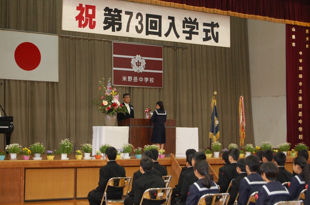 笑顔で新入生55名を迎え、素敵な米野岳中学校の入学式となりました。