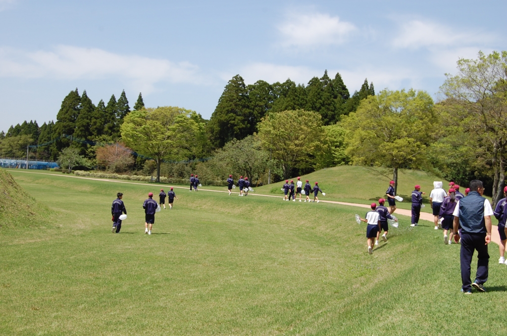 レクリエーションが終わったら、古墳の周りをゴミ拾いしました。