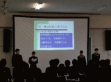 2月21日(木)に、生徒集会を行いました。今回は、清美委員会と体育委員会、グローバルジュニアドリーム事業に参加した生徒からの発表がありました。委員会活動を活性化させよりより学校を目指しましょう。また、グローバルな視点を大切に広い視野で色んな活動へ挑戦してほしいと思います。