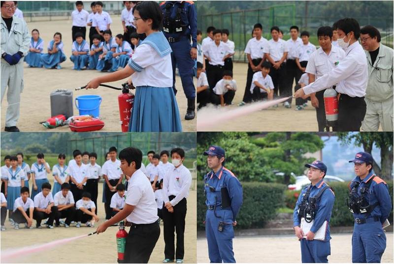 5月31日6時間目に避難訓練がありました。山鹿市消防署の方々に来ていただき、避難の様子を見ていただいたり、消化器の使い方の確認と実践をしました。常に災害への備えを意識して過ごしていきたいですね。ご協力いただきました皆様ありがとうございました。
