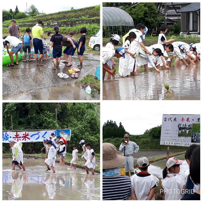 昼 赤米の田植え(装飾古墳館にて)