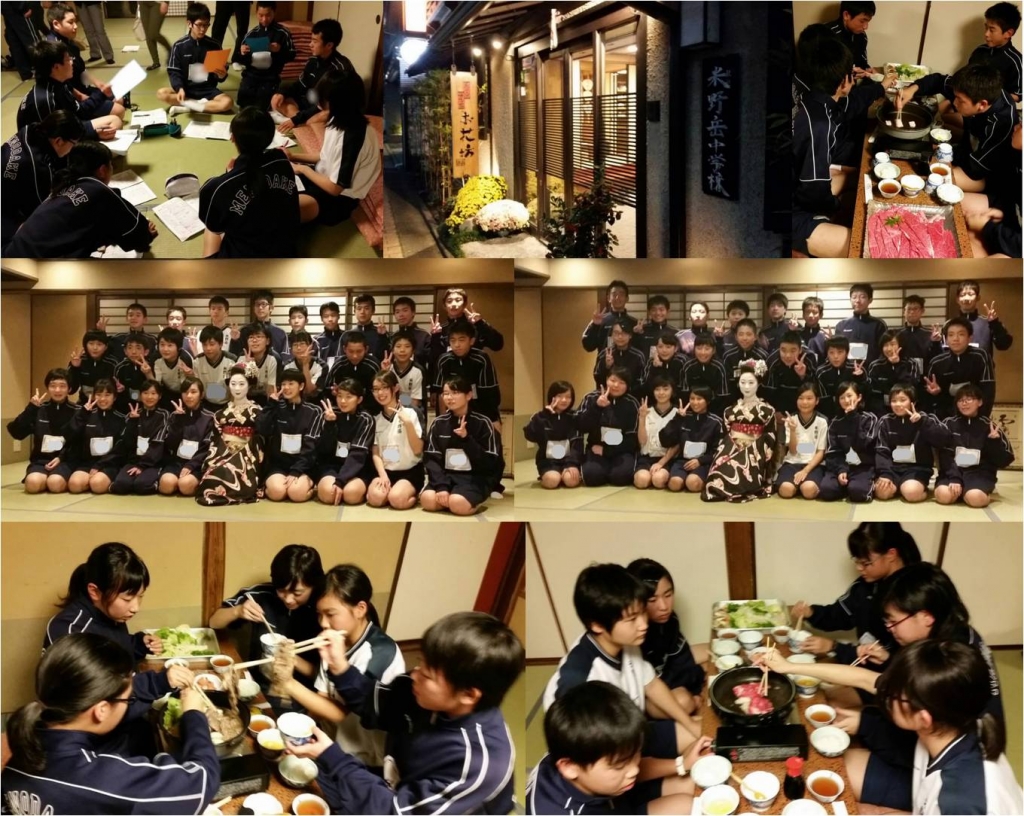 修学旅行2日目の夜の様子です。おいしいすき焼きをたくさん食べて最終日を迎えます!