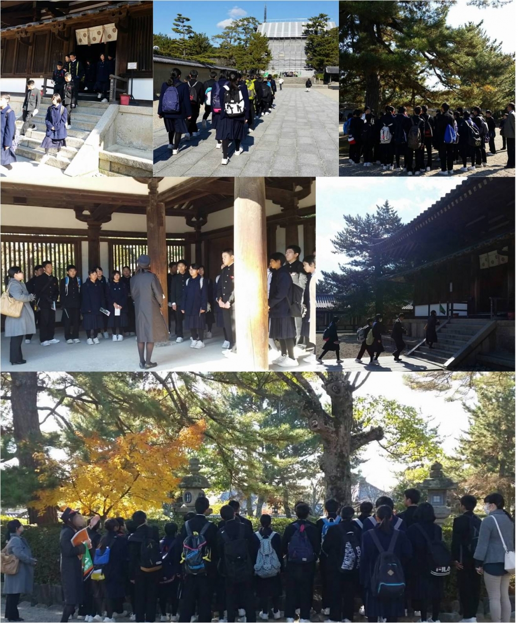 法隆寺見学の様子です。修学旅行最後の学習となります。しっかり学んで来てください!