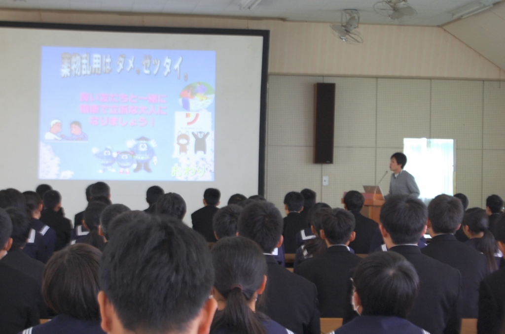 本日4時間目に、山鹿市の学校薬剤師の先生にお越し頂き、薬物乱用防止教室を行いました。