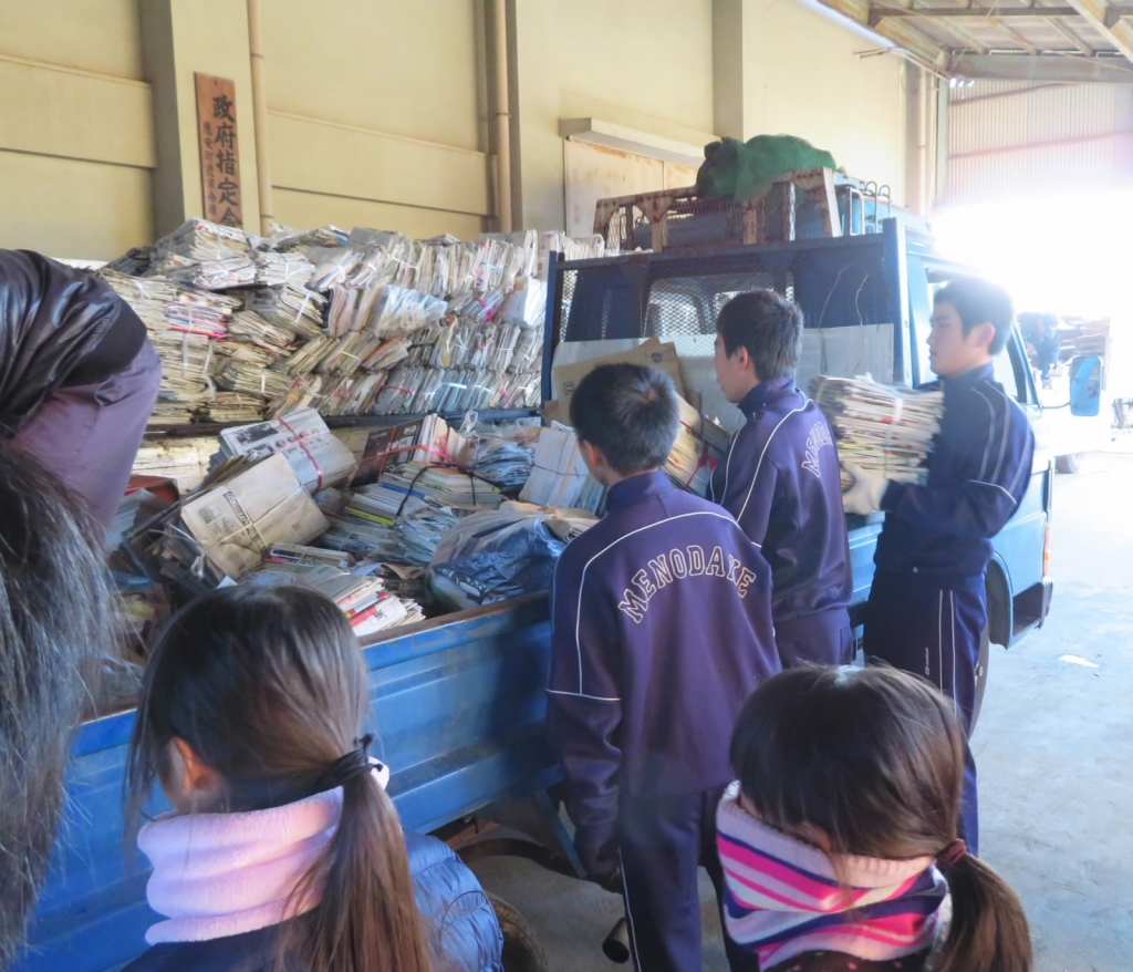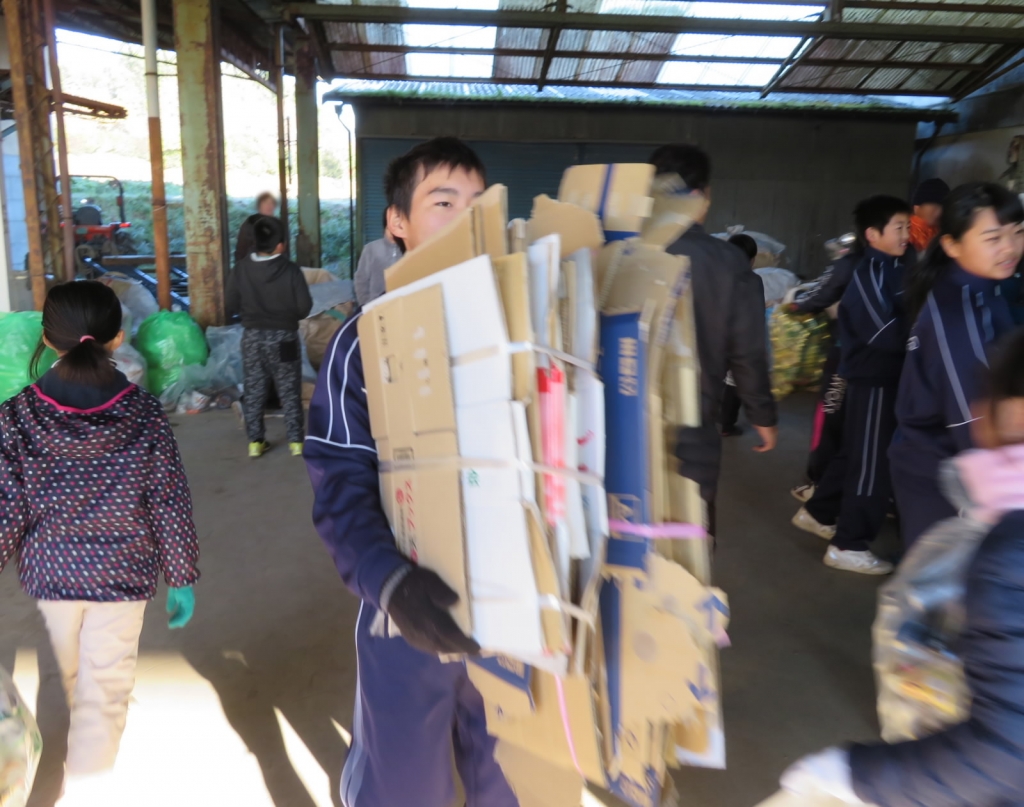 生徒たちは、校区内各小学校の資源回収にボランティアとして協力を行っています。今回は山内小学校でした。おかげさまで小学校の保護者・地域の方々には大変ご好評いただき、生徒たちにとっても地域の方々と触れあえる良い機会となっています。