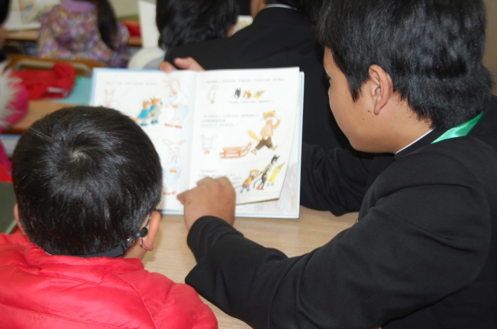 本日朝から読み聞かせを行いました。本校では読書量を競うコンクールを行うなど、読書の推進につとめています。読み聞かせもその一助となっています。