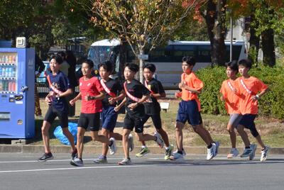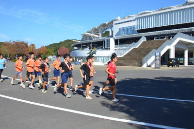 選手たちは、監督・コーチ、引率の先生の指導をよく聞きながら、和やかな雰囲気の中にも、真剣にコースの下見とランニングに取り組んでいました。
