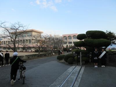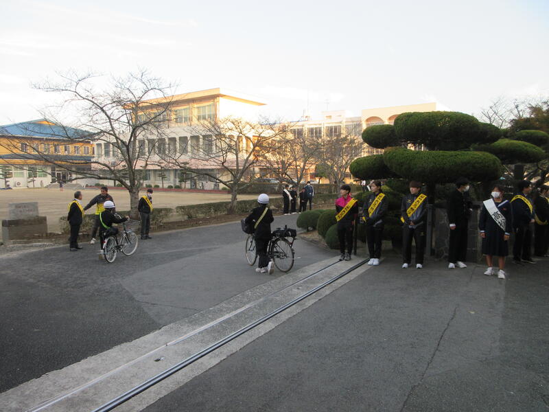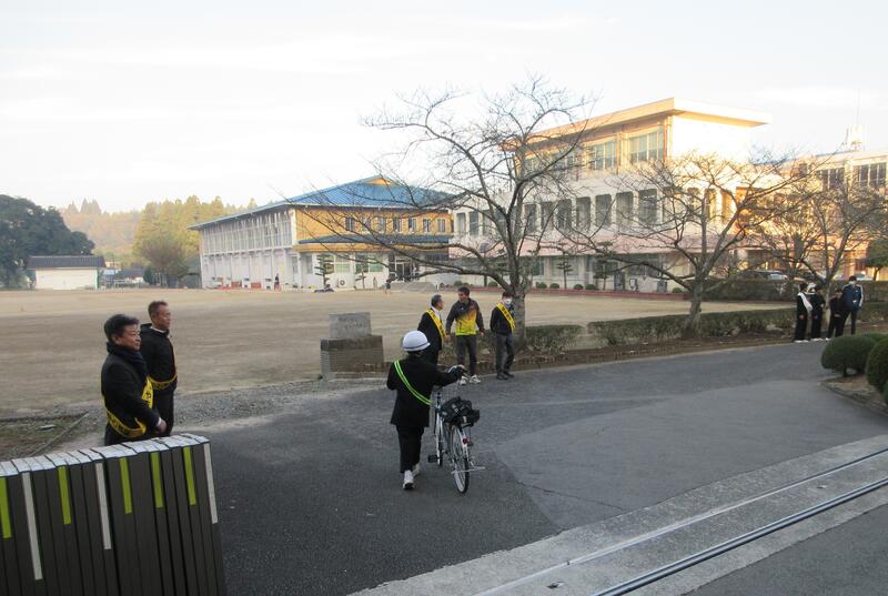 また、米野岳中学校の卒業生で、山鹿市役所に採用された職員お二人にもあいさつ運動に参加していただきました。その姿に懐かしさを感じつつ、成長ぶりをとても嬉しく思いました。先輩の頑張りは在校生の励みになるとしみじみ感じました。
