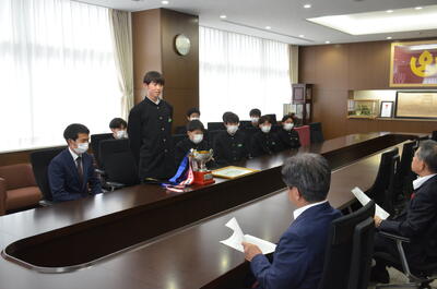 11月25日 山鹿市役所に市長訪問に行きました。先日の熊本県中体連駅伝競走大会の報告と九州中学校駅伝競走大会出場のあいさつにをすることができました。
