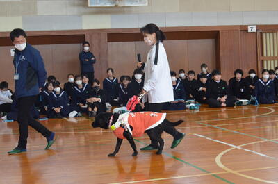 11月28日 人権教育講演会を開きました。今回は、横手純子様と補助犬で盲導犬のちよちゃん、春木雄一朗様を講師にお迎えして、視覚に不自由さや障がいを持たれた方の思いや暮らしを知り、共に生きることへの願い聴くことができました。