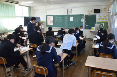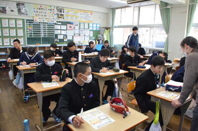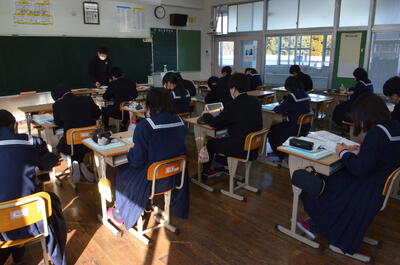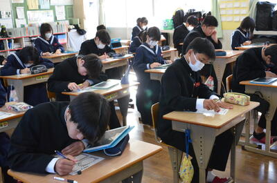 教室に戻った子供たちは、担任の先生が準備されたシートに、3学期の目標を考えて記入したり、班活動の目標を決めていたりしました。また、3年生は、カウントダウンカレンダーを準備したり、この後のテストに備え、学習の振り返りをしたりしていました。
