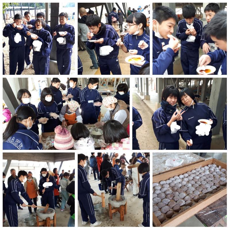 12月14日土曜日、装飾古墳館の古代餅つき体験に10名の生徒が参加しました。白米、赤米、黒米を混ぜて餅をつき、きれいな紫色のお餅ができました。物産館からいただいたぜんざいも美味しかったです!ありがとうございました。