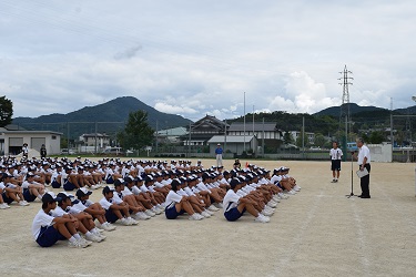 郡中体連陸上競技大会選手推戴式 投稿日時 : 2018/09/13 学校サイト管理者 上益城郡中学校陸上競技大会に出場する選手の推戴式を行いました。本大会は9月18日(火)にえがお健康スタジアム(熊本県民運動公園陸上競技場)で行われます。御船中学校からは、陸上部を中心に選ばれた代表の生徒たちが出場します。選手たちは夏休み、また9月になってからも体育大会の練習と並行して、各競技の練習に励んできました。御船中学校の代表として、精一杯頑張ってきますので、応援よろしくお願いします。 Tweet {{options.likeCount}} {{options.likeCount}} 0 コメント
