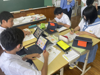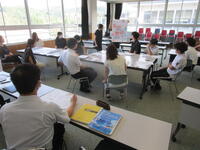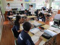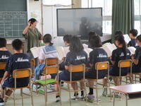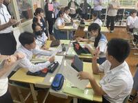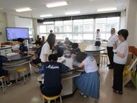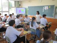 10月7日(火)に大研(研究授業)を行い、8日(水)に小中合同の授業研究会を実施しました。本島教諭による1年生の英語の授業で、みんなよくアウトプットして頑張っていました。授業研究会では、グループ討議で成果や課題を確認することができました。