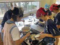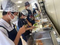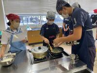 お昼の12時過ぎ、ランチルームで給食の検食をしていると、ちょうど4時間目の授業で調理実習を行っていた1年生のみなさんが、「作ったので食べてください」と、できたての「アップルパイ」を届けてくれました。