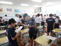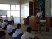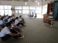 7月18日(金)に、夏休み前全校集会を行いました。校長講話の後、生徒指導、安全担当からの話をしました。39日間の夏休み、計画的に過ごしてほしいと思います。