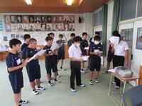 10月14日(火)に後期始業式と中体連駅伝の激励会を行いました。始業式では、4人の代表が後期の目標を発表してくれました。式後には、15日に行われる駅伝大会に参加する生徒の激励会がありました。