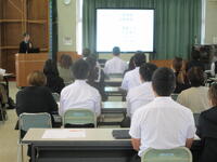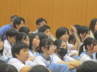 7月3日(木)に、全学年対象の人権教室を実施しました。人権擁護委員4名の方にご来校いただき、陶山様から「デートDV」についての講話をしていただきました。先生をモデルにしたロールプレイや生徒同士のペアトーク等もあり、わかりやすく学ぶことができました。