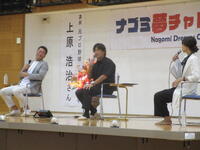 10月1日(水)に、和水町主催の「ナゴミ夢チャレンジトーク」が和水町スカイドーム2000で行われました。元メジャーリーガーの上原氏、元ラグビー日本代表の大畑氏の講演を町の小中学生が聴きました。最後の抽選では、三加和中から2人がユニホームとボールをゲットしました。